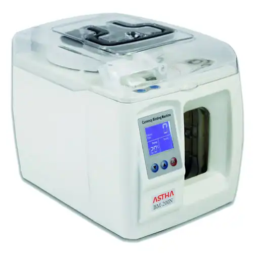 The ASTHA BM-200N Banknote Banding Machine is a heavy-duty, high-efficiency machine ideal for cash centers and high-volume applications that require speed and dependability. It functions quietly, producing less than 70 decibels, making it acceptable for busy environments. It has quick binding speeds, takes less than 1.5 seconds per operation, and can handle up to 100-200 notes at once with a thickness of 4mm. The machine’s internal iron gear assures durability and long-term performance, letting it operate continuously for more than 800 hours without stopping. One of the most notable advantages of the ASTHA BM-200N Banknote Banding Machine is its instant heat function, which allows for immediate use without waiting for the machine to warm up. The operation is easy and user-friendly; simply place the notes vertically into the entry, and the machine will firmly tie them. The 1.5-inch LCD improves efficiency by giving operators with clear feedback. The machine is primarily intended for BDT notes, however it may be modified for other currencies if necessary. In terms of safety, the ASTHA BM-200N Banknote Banding Machine includes an automated shutdown feature that turns off the machine after two hours of inactivity, conserving energy and safeguarding the device from excessive wear. Additionally, in the event of a problem, the equipment will shut down immediately to prevent harm and safeguard user safety. With its durable design and high-performance binding capacity, the ASTHA BM-200N is an excellent solution for banks, financial institutions, and large organizations that require efficient and secure note bundling regularly.